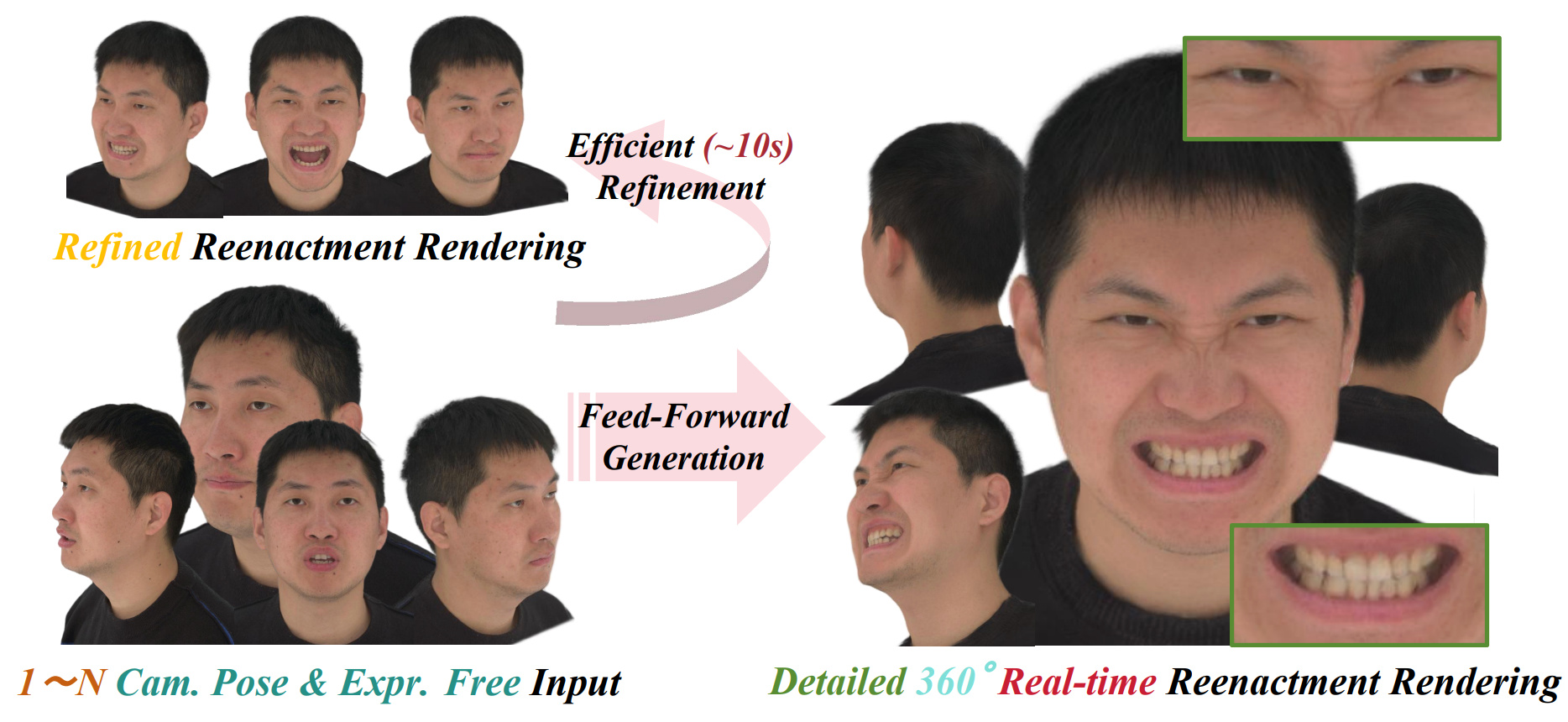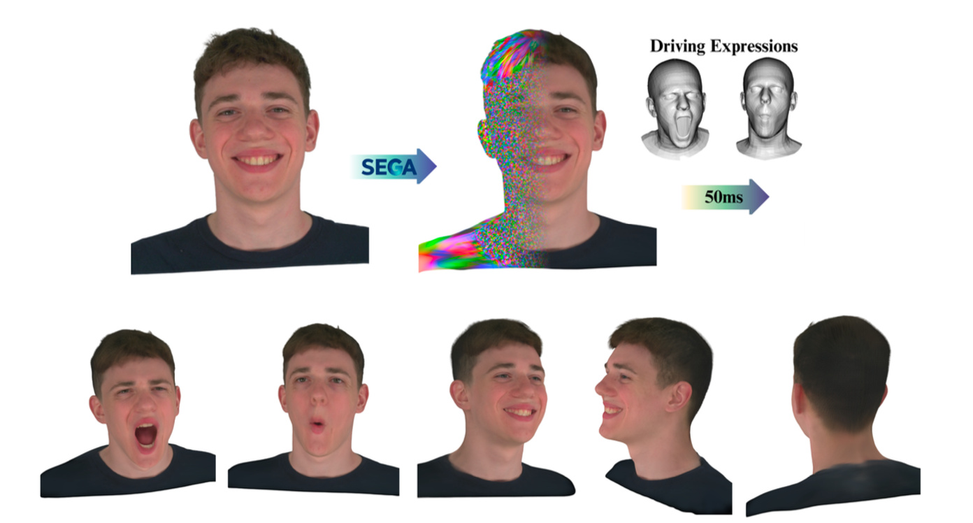 We propose SEGA, a novel approach for Single-imagE-based 3D drivable Gaussian head Avatar creation that combines generalized prior models with a new hierarchical UV-space Gaussian Splatting framework. |