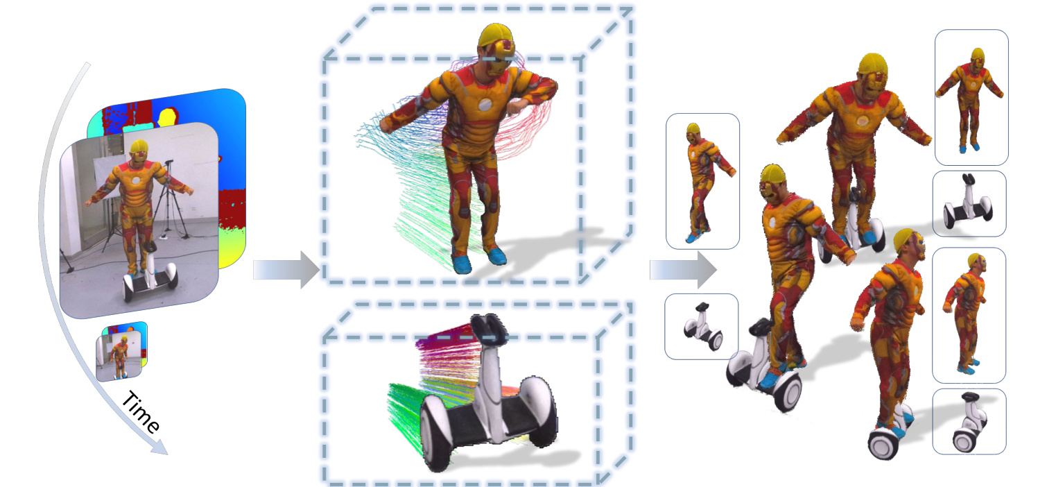 Yuheng Jiang, Kaixin Yao, Zhuo Su, Zhehao Shen, Haimin Luo, Lan Xu CVPR 2023 We propose a neural approach for instant volumetric human-object tracking and rendering using a single RGBD camera. It bridges traditional non-rigid tracking with recent instant radiance field techniques via a multi-thread tracking-rendering mechanism. |